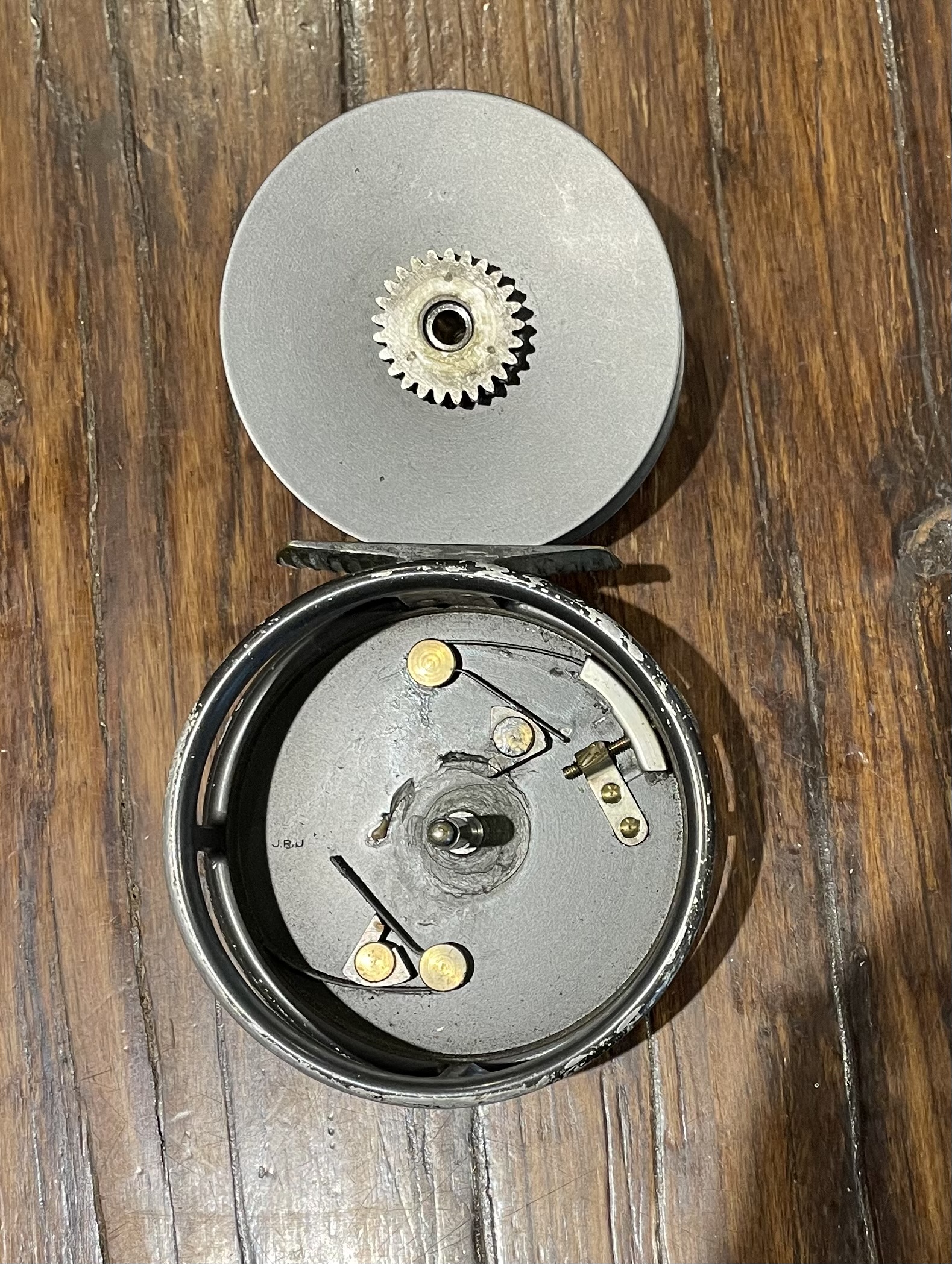 Reel has J.R.J. (Jack Johnson) initials stamped inside frame.