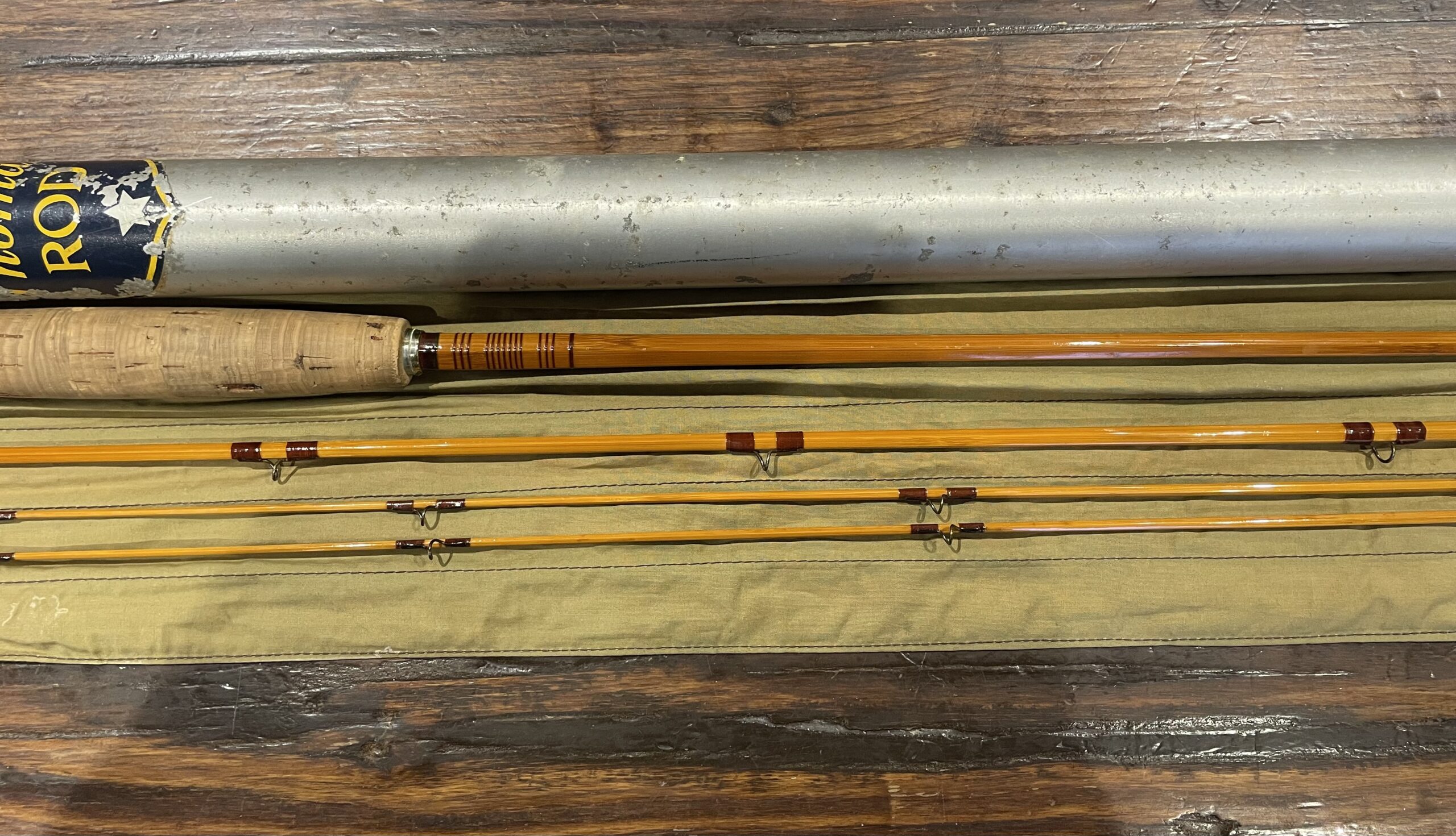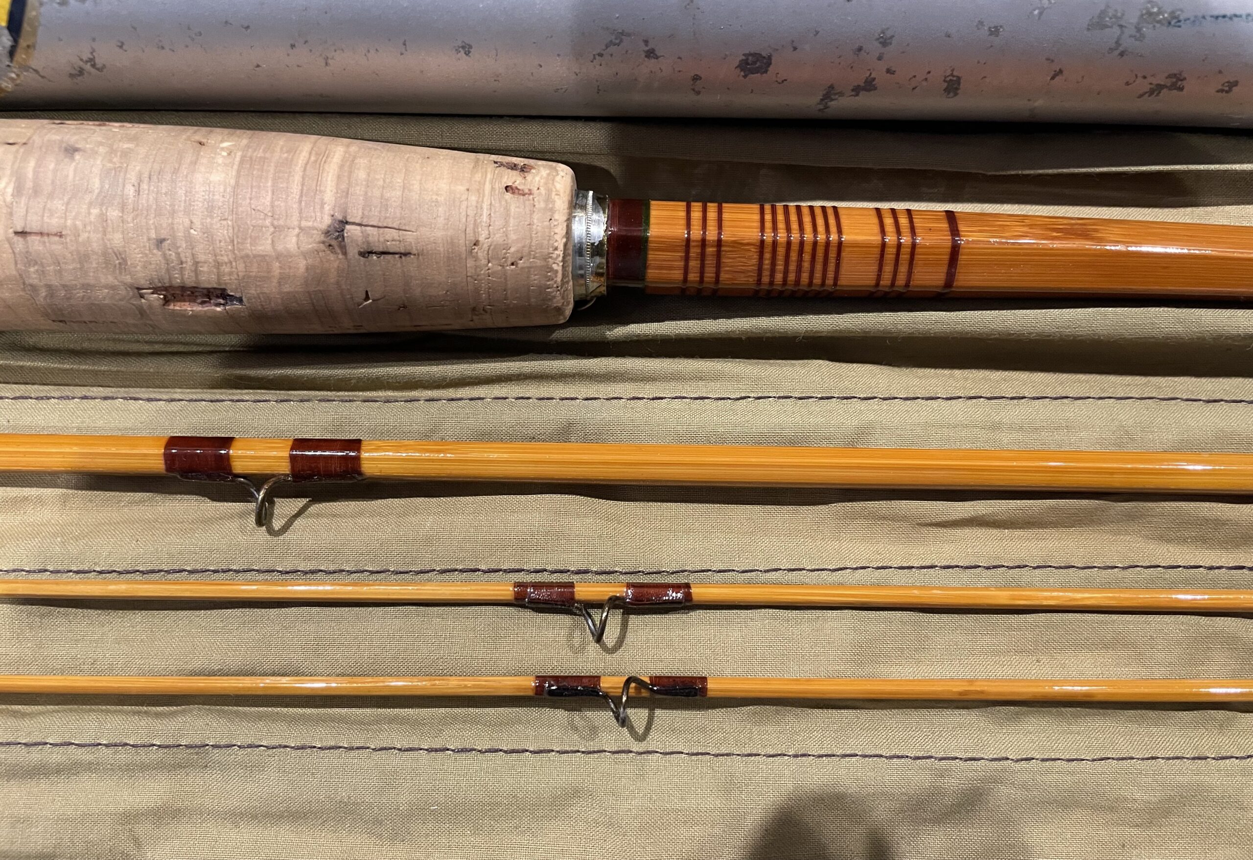This nice rod still has the original bag with the original hang tag, and the original brass capped tube.