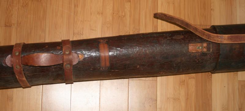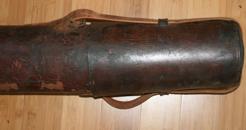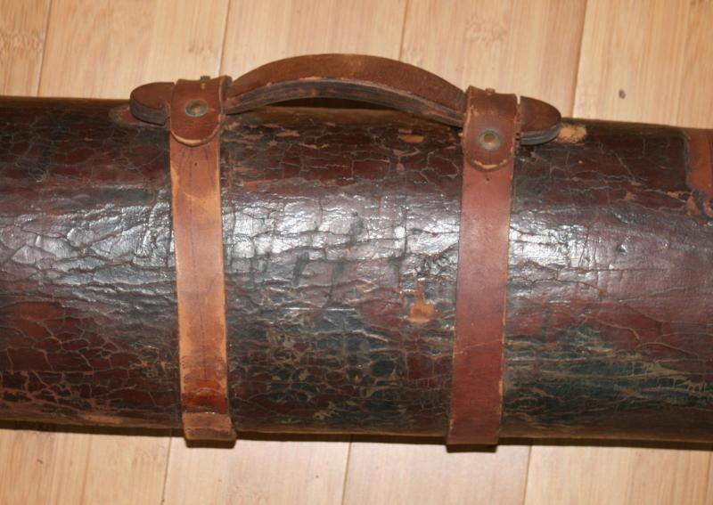 Vintage 60″ Leather travel rod tube. 5″ inside diameter. Holds several rod tubes.