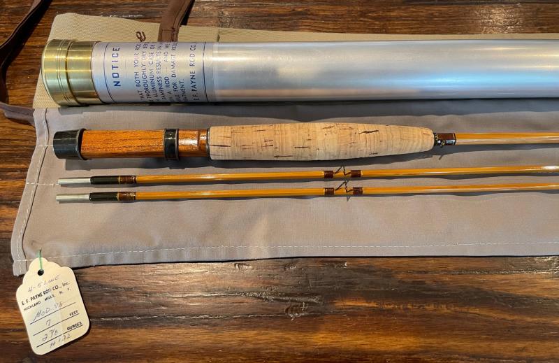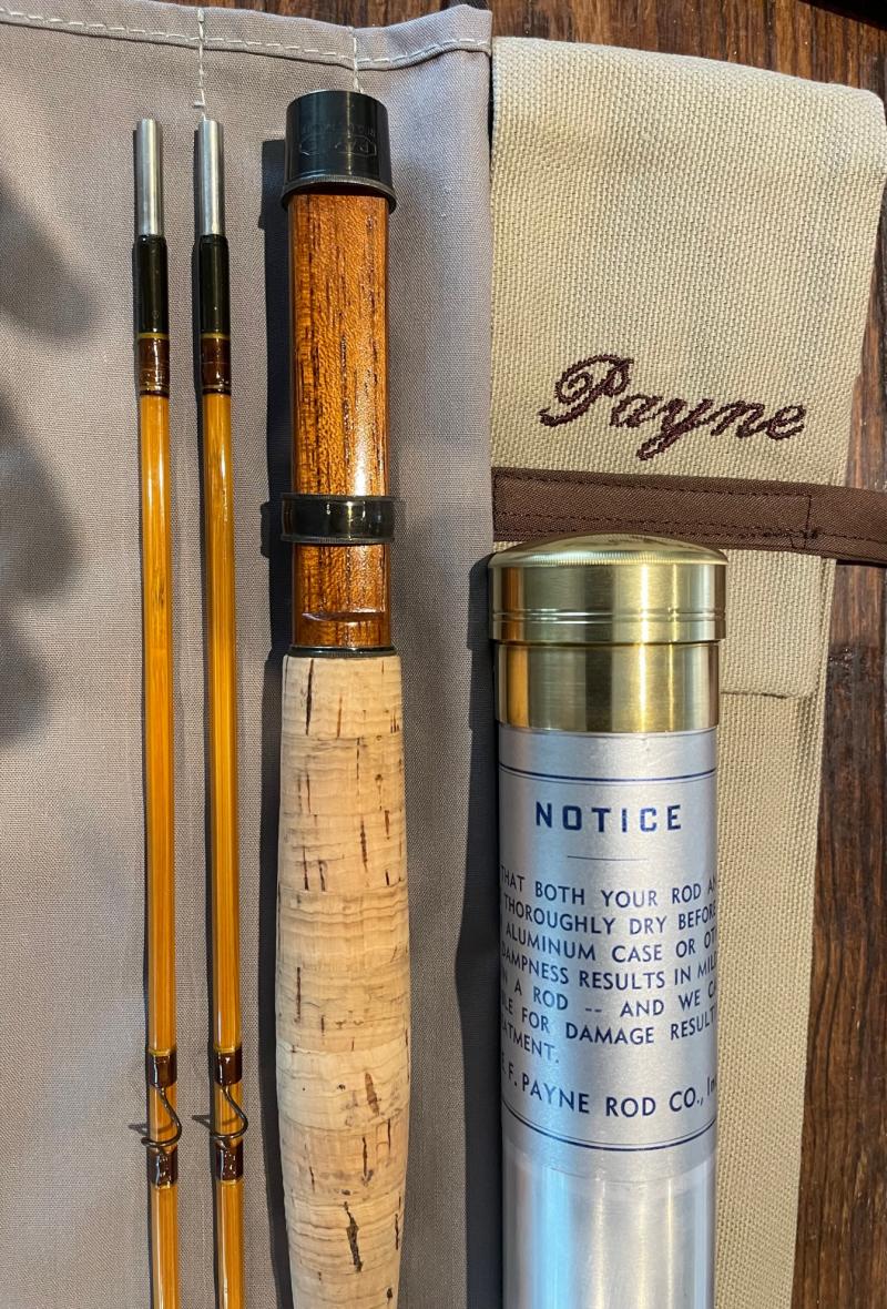 Rod comes with the original cloth rod bag with the Highland Mills marked hang tag still attached, as well as the original mint condition labeled Payne tube.